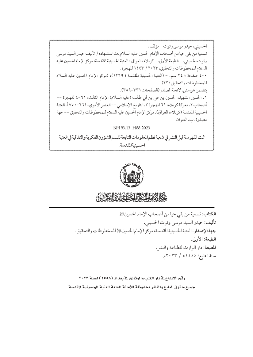 سيرة شخصية لأهل بيت الأمام الحسين(عليه السلام) واصحابه ممن بقي بعده