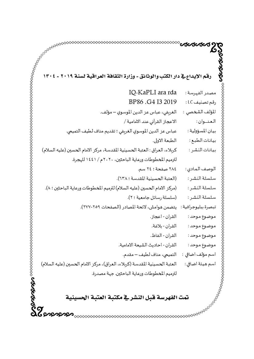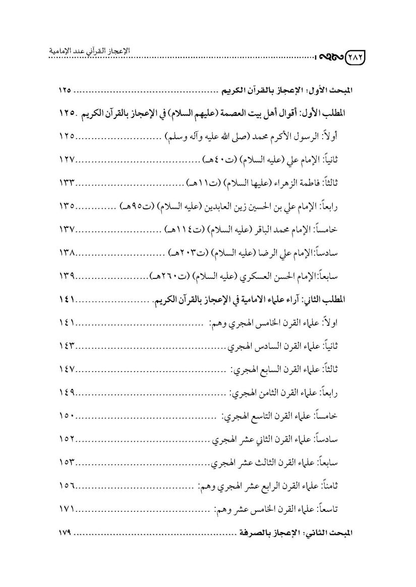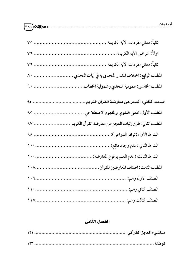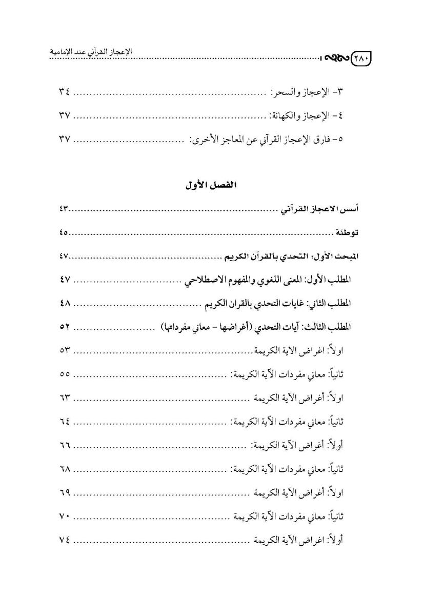 دراسة في الأعجاز القرآني بمباحث تفرعية عدة( أعجاز آيات القرآن بشكل عام وطرق اثبات العجز - أقوال الأئمة المعصومين ( عليهم السلام) وآراء علماء الامامية في بيان الوجوه الأعجازي للقرآن الكريم - مفاهيم الأعجاز بالصرفة وأصل نشؤها - تطبيق الأعجاز القرآني ب( الفصاحة والبلاغة, الأعجاز الغيبي, الأعجاز العلمي )