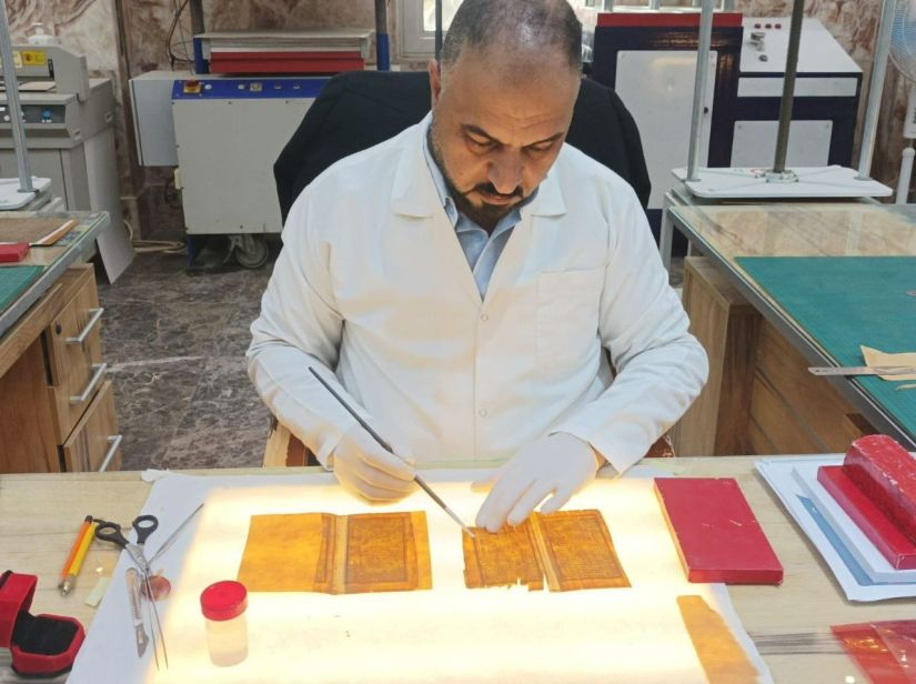 مصحف القرآن الكريم المخزون قديما داخل حرم الامام الحسين ( عليه السلام)