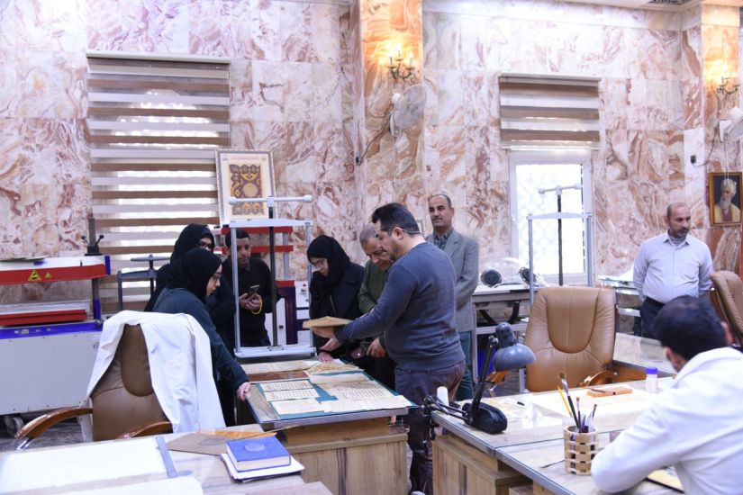 زار مركزنا وفد من دول الخليج( خطاطين وباحثين ) واطلاعهم على آلية عمل المركز (الفهرسة والتحقيق - الترميم ومراحله - التجليد والتذهيب - حفظ المخطوطات ) وأبدوا أعجابهم والعرفان بالجهد المبذول لخدمة التأريخ والارث الديني والحضاري والثقافي ...